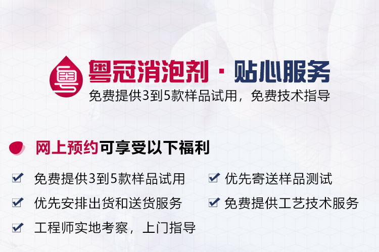 • 免費提供3到5款消泡劑樣品試用,滿意再購買
